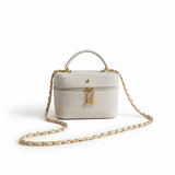 El Vanity Box Amalfi es el accesorio perfecto para quienes buscan un bolso compacto, elegante y funcional. Su diseño estructurado y minimalista combina lujo y practicidad, ideal para elevar cualquier look.