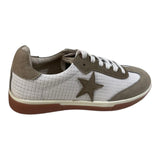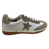 - Diseño: Tenis de corte bajo, estrella beige en el lateral, cordones planos, suela gruesa, paneles con textura.