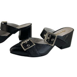 Mule 'Declaración': Estilo Audaz con Hebilla en Cuero Genuino Negro Byjennga
