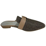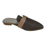 Añade un toque de distinción a tu look diario con nuestro Mule 'Tejido Sofisticado' de Byjennga. Confeccionado con un innovador material texturizado en patrón de espiga que contrasta elegantemente con una correa de cuero legítimo en tono nude, adornada con una sofisticada hebilla. Este mule de punta fina y tacón bajo es ideal para la mujer que busca un calzado práctico, versátil y con un toque distintivo para su estilo casual o semi-formal, garantizando confort y elegancia en cada paso.