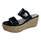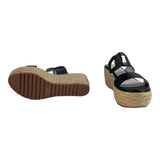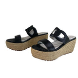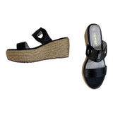 Sandalia Cuña 'Altura Veraniega': Confort y Estilo en Cuero Genuino Negro y Yute Byjennga