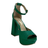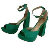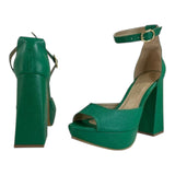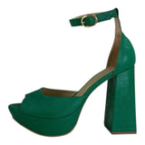 Sandalia 'Esplendor': Tacón y Plataforma en Cuero Genuino Verde Esmeralda Byjennga