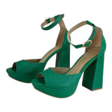 Deslumbra con nuestra Sandalia 'Esplendor' de Byjennga, una pieza audaz y sofisticada que te hará destacar. Confeccionada en cuero legítimo de un vibrante tono verde esmeralda, este diseño combina un imponente tacón bloque con una plataforma delantera, brindando altura y estabilidad con un confort sorprendente. Perfecta para eventos especiales, fiestas o para añadir un toque de color y glamour a tus outfits más elegantes.