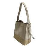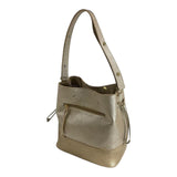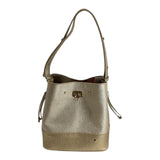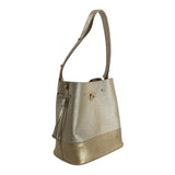 Descubre el lujo en cada detalle con nuestro Bolso 'Esencia Dorada' de Byjennga. Confeccionado en cuero legítimo de un deslumbrante tono dorado, este bolso tipo cubo destaca por su elegante combinación de texturas: cuero granulado en el cuerpo principal y una sofisticada textura de piel de reptil en la base. Su cierre de cordón ajustable y sus herrajes dorados complementan su diseño exclusivo, ideal para la mujer que busca un accesorio que combine la elegancia atemporal con un toque moderno y distintivo para cualquier ocasión.