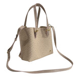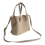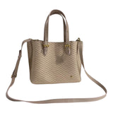 Lleva tu estilo a otro nivel con nuestro Bolso 'Nude Reptil' de Byjennga, una pieza que combina diseño y funcionalidad. Confeccionado en cuero legítimo de un sofisticado tono nude y una distintiva **textura que simula piel de serpiente**, este bolso de mano destaca por su forma estructurada y sus líneas limpias. Sus asas superiores y su correa larga ajustable brindan versatilidad, ideal para la mujer que busca un accesorio elegante y espacioso para el día a día, la oficina o eventos especiales.