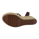 - Diseño: Sandalia de cuña, tiras cruzadas en el empeine, correa ajustable al tobillo, plataforma de yute trenzado.